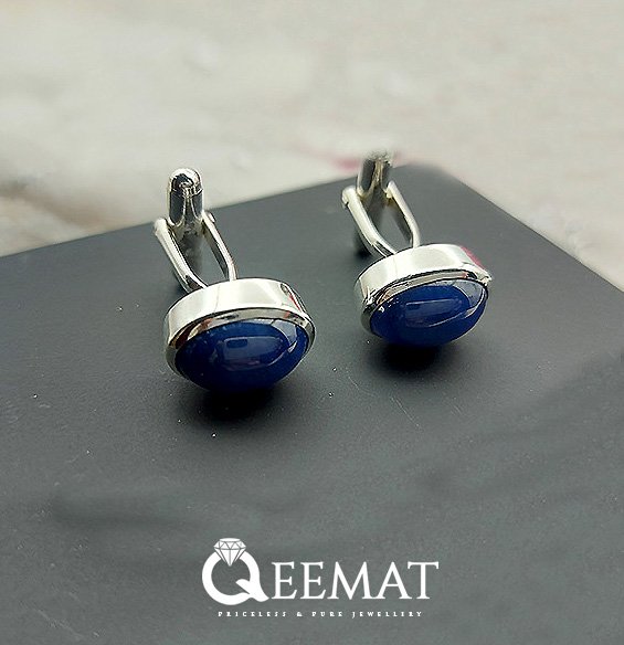 Blue Star Sapphire Cufflinks in 925 Sterling Silver for Men’s