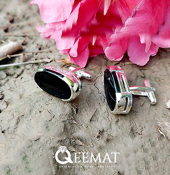 Natural Black Agate Cufflinks for Men – Personalized Silver Cufflinks