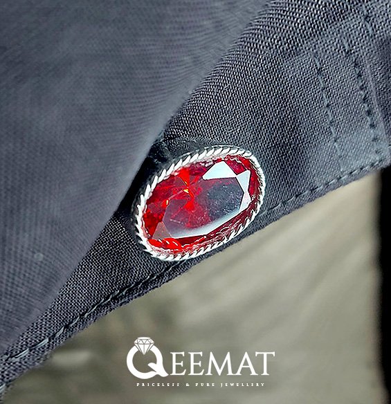 925 Silver Handmade Cufflink Studs for Men with Red Zircon Gemstone