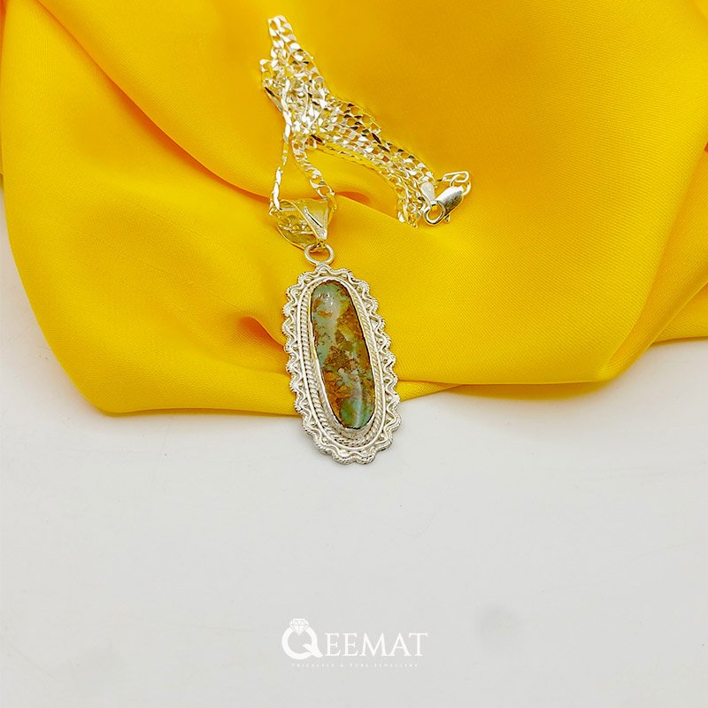 Ellipse Shape Scenic Turquoise Necklace – Long Wedding Event Pendant
