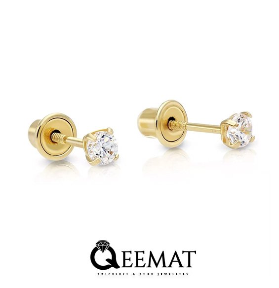 Gold Plated 925 Silver Diamond Stud Screw Back Earrings