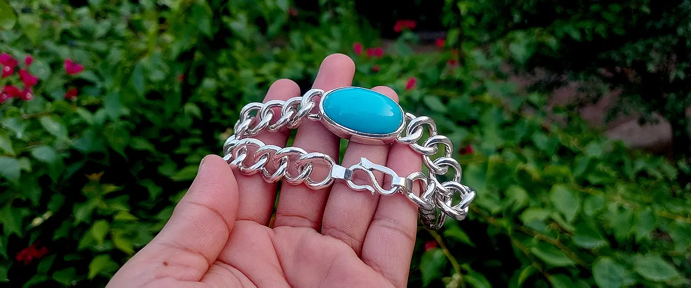 Unique Silver Bracelet with Rectangular Turquoise Gemstone
