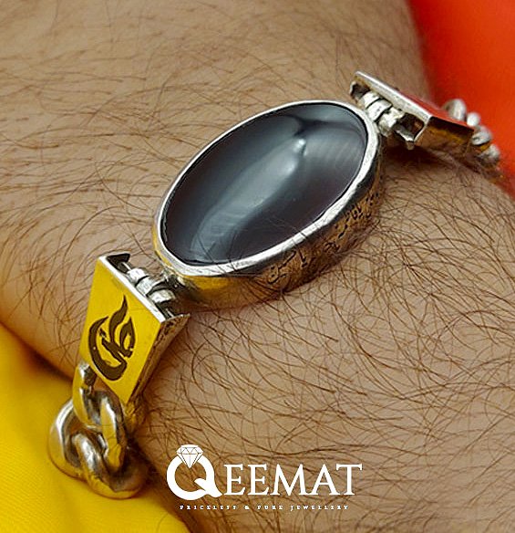 Agate Bracelets for Men of 925 Silver – Ya Ali A.S Engraved Bracelet