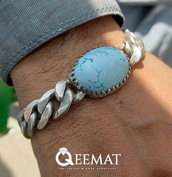 Turquoise Stone Men’s Bracelet of Pure 925 Sterling Silver – Feroza Kada