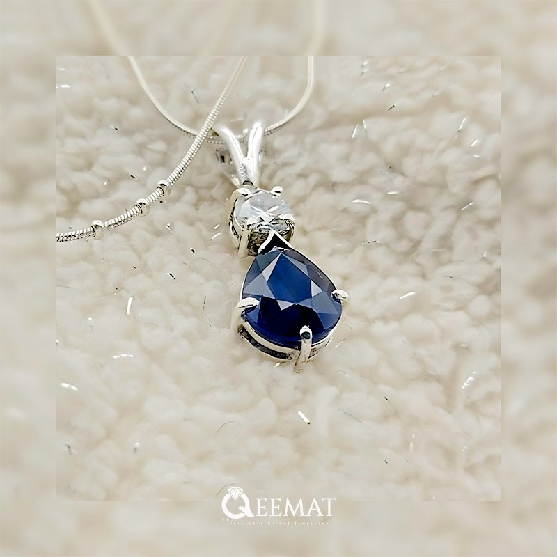 Pear Shape Blue Sapphire Engagement and Party Wear Locket – 925 Sterling Silver