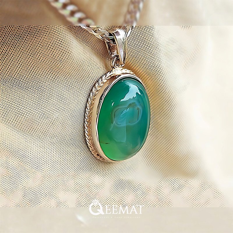 Handmade Green Agate Pendant with Chain of 925 Silver for Boys & Girls