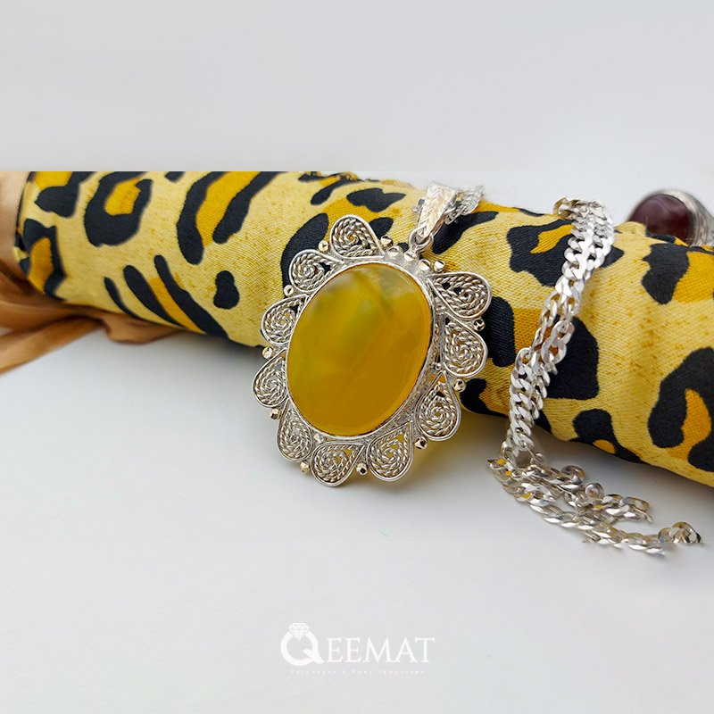 Natural Yellow Agate Pendant for Women – 925 Sterling Silver