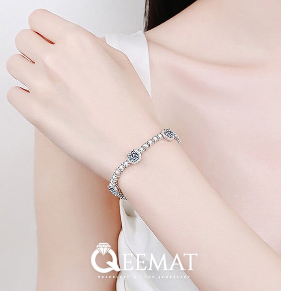 925 Sterling Silver Slider Bracelet – Elegantly adjustable with sparkling Zirconia or Moissanite stones.