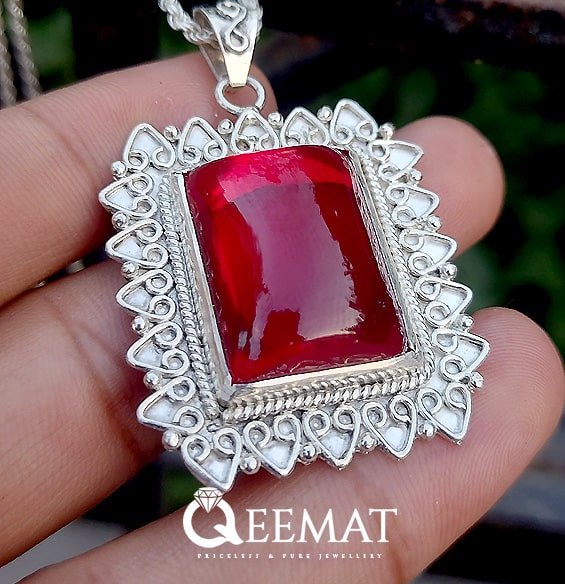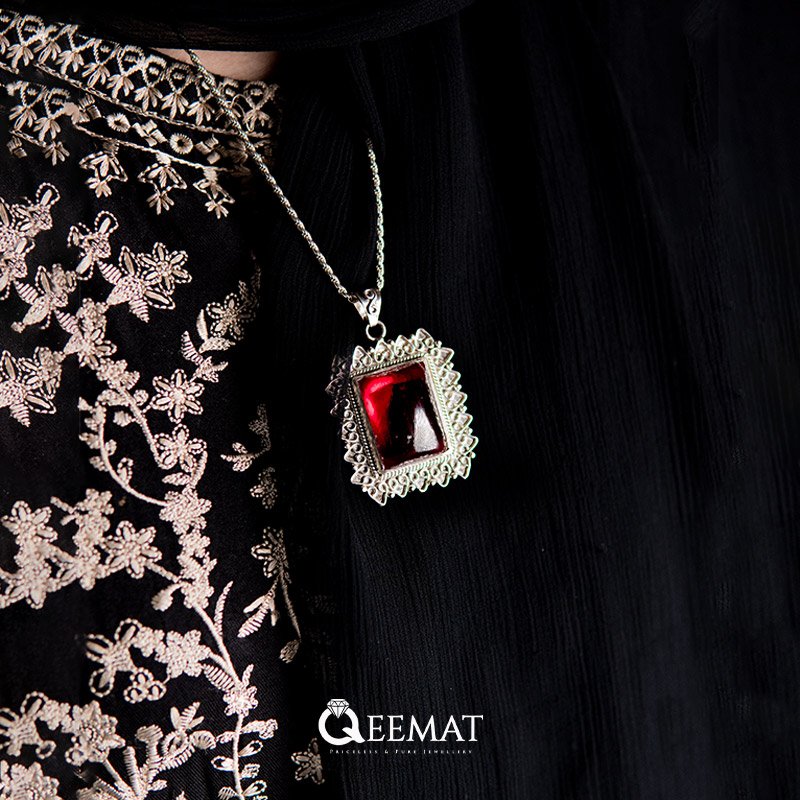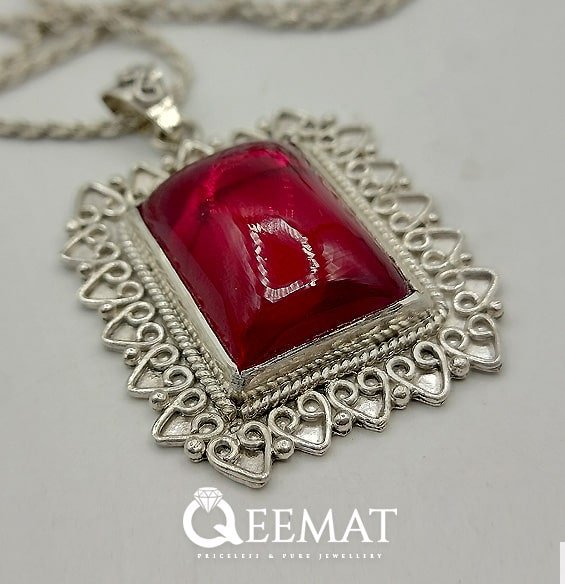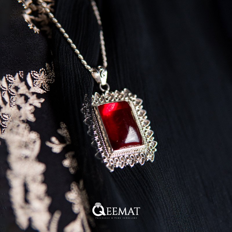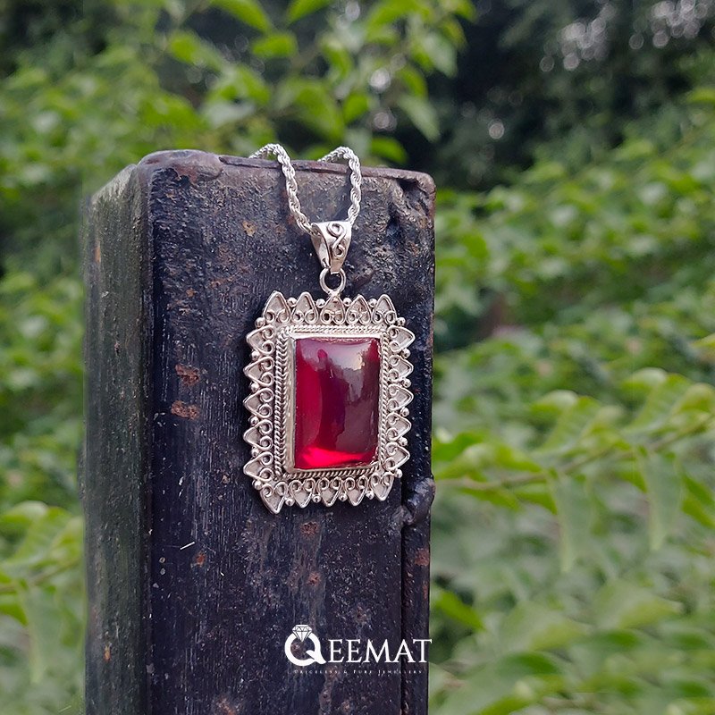 Select A Chic Handmade Necklace Of Big Red Stone with Art Deco Flair