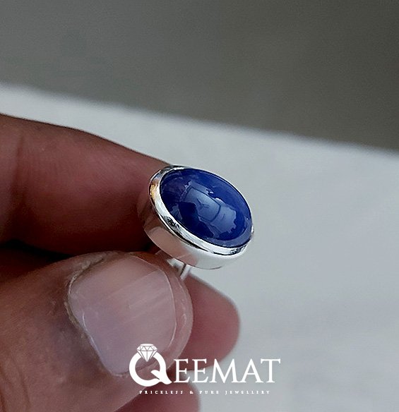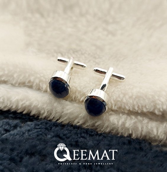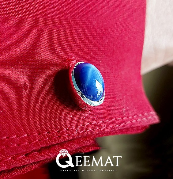The dancing star-like natural phenomenon on these two sapphire cufflinks captivates everyone’s eye. There is a thick wall of sterling silver around these oval shaped natural stones with a 1/4th degree of bevel. The light not only reflects from the edges of the stone but also from these beveled walls, creating an eye-catching combination. We have polished these navy blue cufflinks so superbly that it creates a mirror-like effect as well. Buy a pair of customized cufflinks from us, either in gold plated silver metal or naturally silver color.