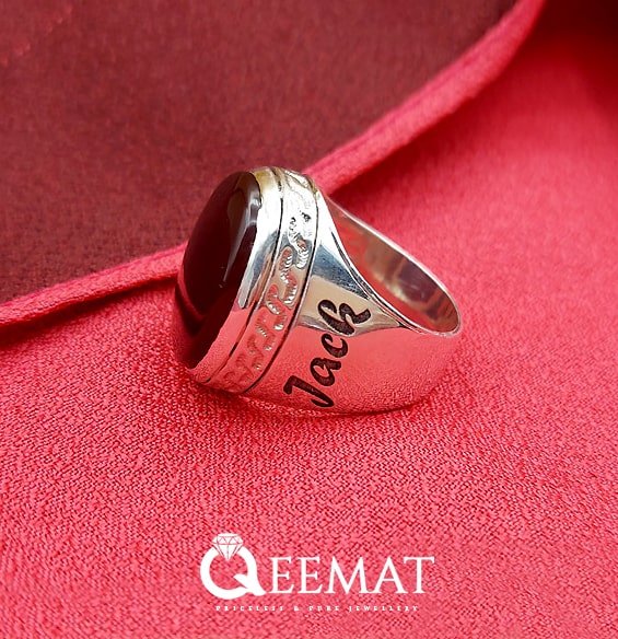 Custom Name Agate Ring For Men In Pure Silver Online Order