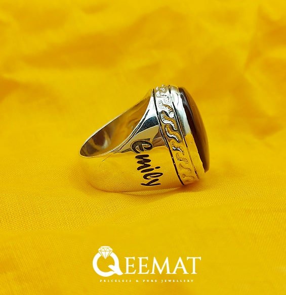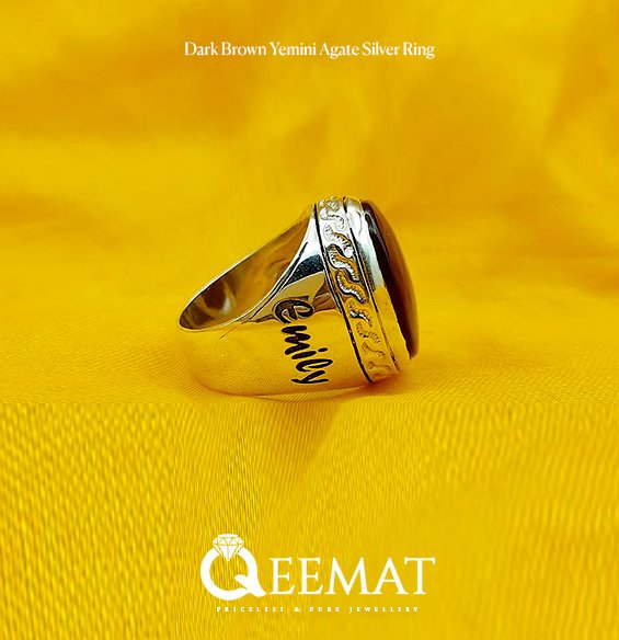 Although the crystallization of an agate or aqeeq decides its colour but the environmental factors also play a pivotal role in the making of this gemstone. Yemeni aqeeq are in dark brown colour and aqeeq lovers like to wear this beautiful aqeeq fitted in shinning ring.
