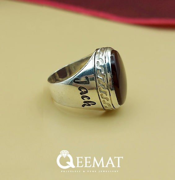 Agate Ring For Men With Custom Name And Pure 925 Silver