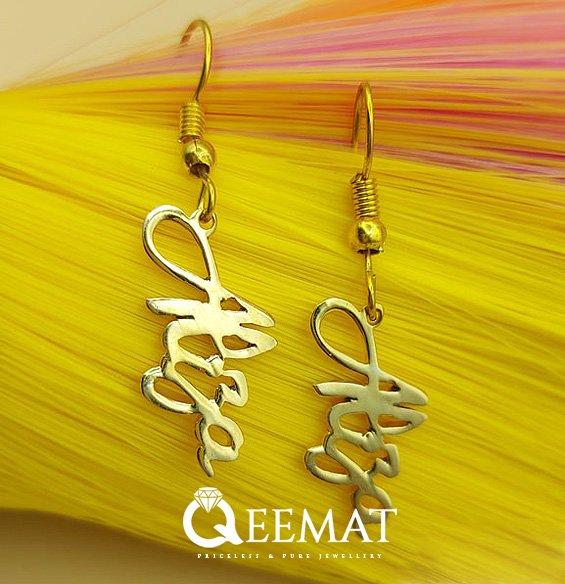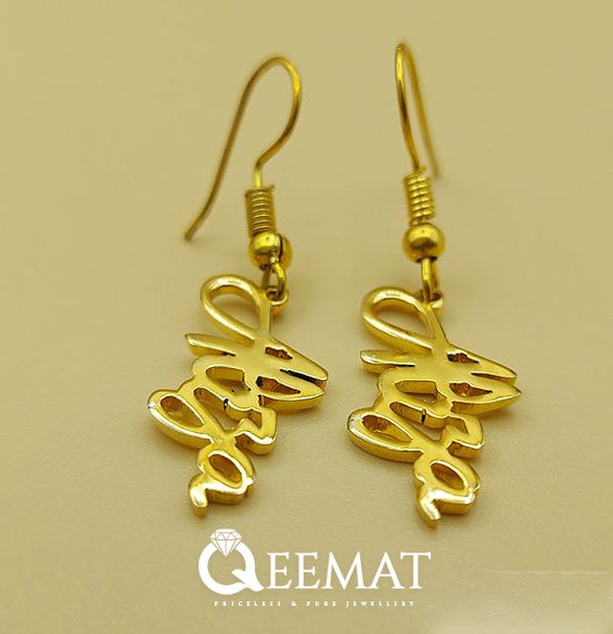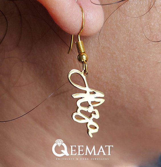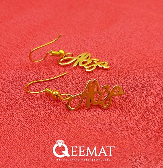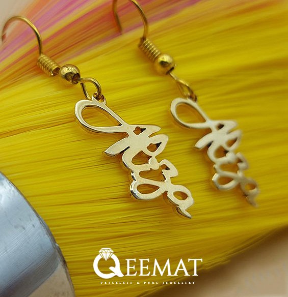 At qeemat.com, you can order earring designs with customized names at affordable prices. In this article, the font used is one of the most recognized and attractive fonts. This ornament was polished and manufactured under the close supervision of expert jewelers.