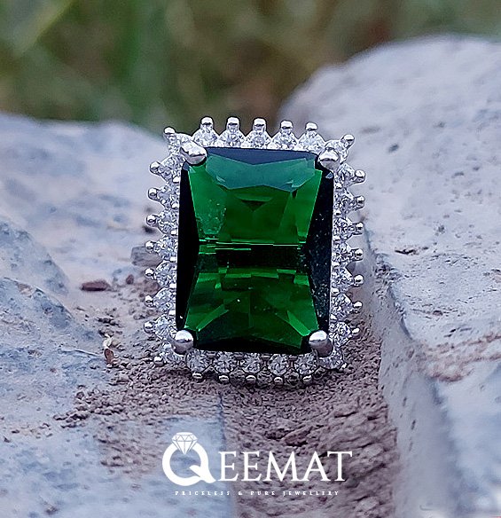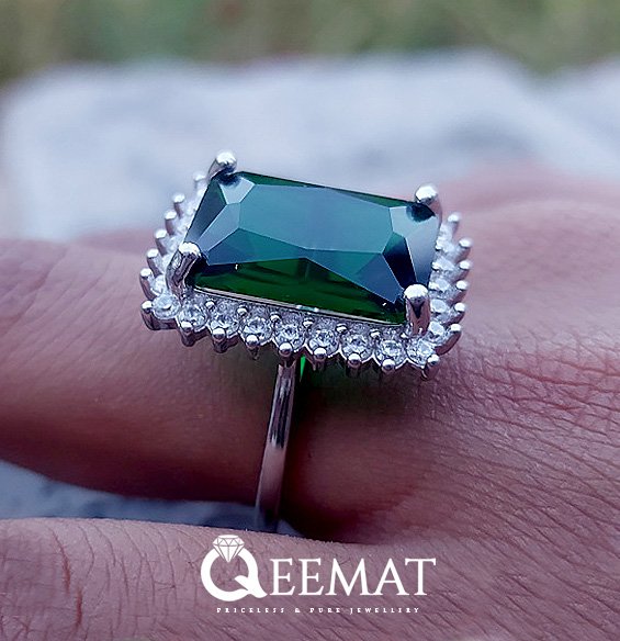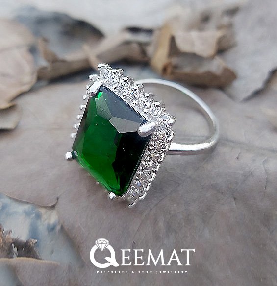 Green Gemstone Tourmaline Ring with Pure Silver Metal for Women