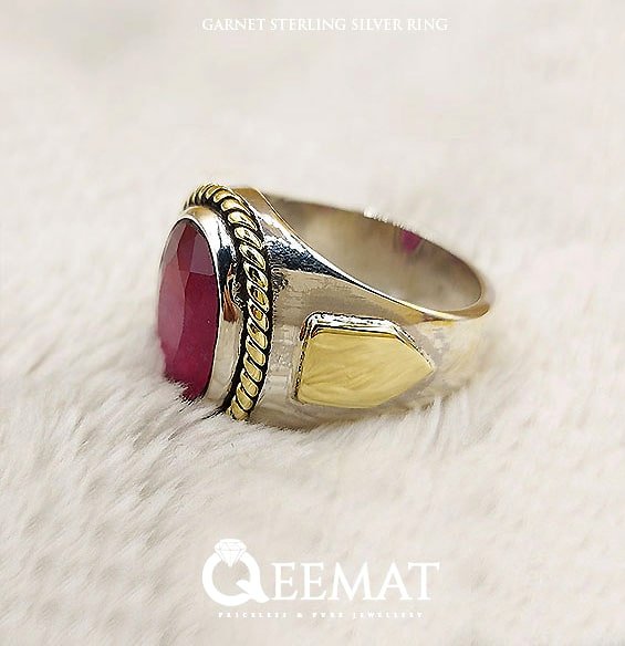 Buy Online A Latest Design Garnet Stone Ring Made of Pure Silver