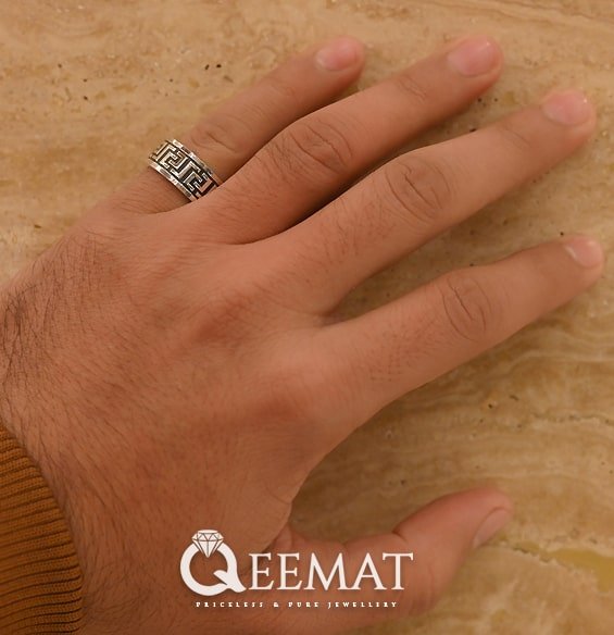 Presenting a gift of sleek yet bold silver band ring, will help you winning the heart of your loved ones for good. We are introducing an engraved Versace pattern on this thin silver band ring to make it a masterpiece like no other. You can order a couple of these ring bands, a thin one for her and a thick one for him, making it a couple band.