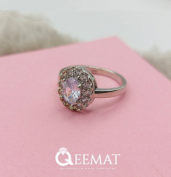 The focal point of this brilliant promise ring with halo structure is the central stone of moissanite mounted on top of other small stones. We have used 4 carat moissanite stone in this unisex ring that shines like a diamond when light refracts or reflects from it. This is the best moissanite promise ring for her that has enduring sparkle and a unique design.