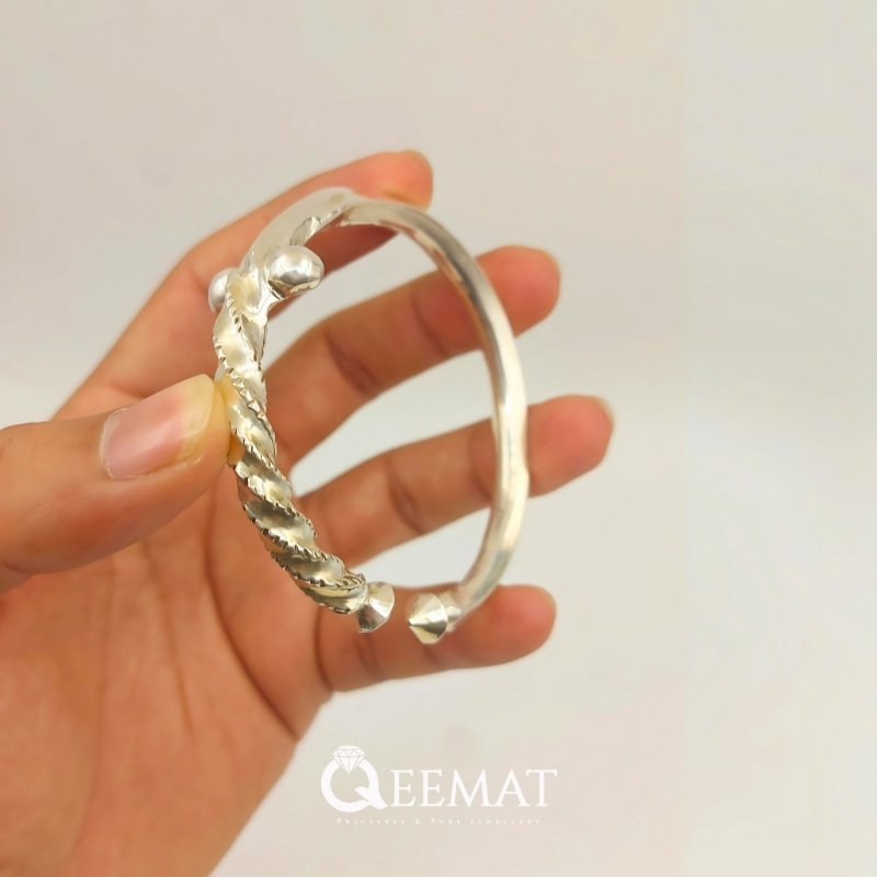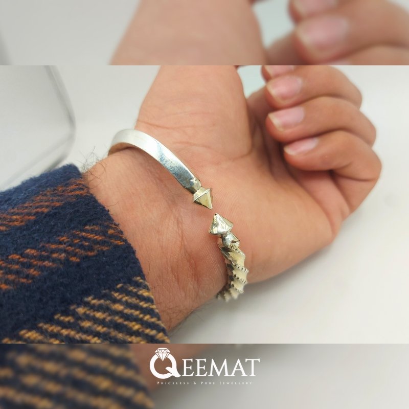 17.5mm Heavyweight Silver Kada in Talwar style (Sword’s Style) has been made very carefully. The shine of this Kada is long-lasting and its sides are beautifully molded to shape a different and unique style. This style is specially made for men and women can find their favorite jewelry as well on this website. Muslim men have a great association with such styles as it reminds them of their times and this design is very popular among them in jewelry ornaments.