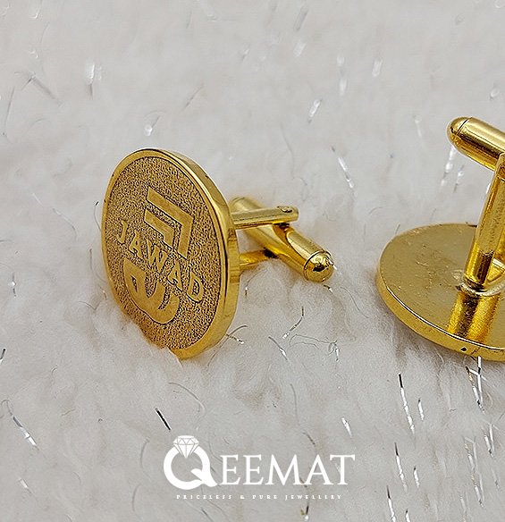 A circular Pair of Engraved Cufflinks for Men in Golden Color