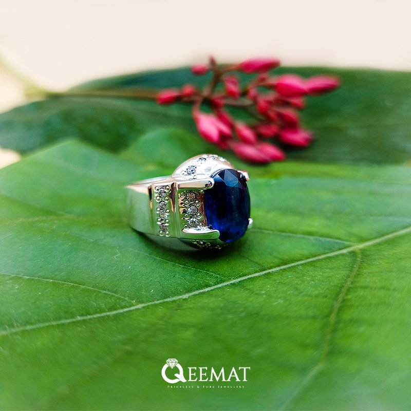 Everyone aspires to buy a silver ring that gives you a regal like charm and appearance. This special dark blue stone ring features top-notch finishing, a beautiful arrangement of small stones and four sturdy tab prongs. Together, these elements complement each other to transform this ring into a high class item for men’s fingers. A 7 to 8 carat dark blue stone of sapphire family adds a feather in the cap of this magnificent ring.