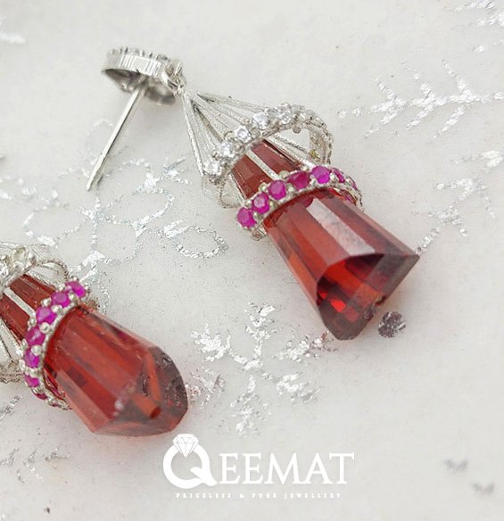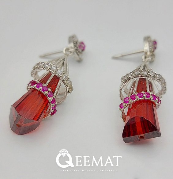 Crystal Red Stone Drop Earring Made of Sterling Silver