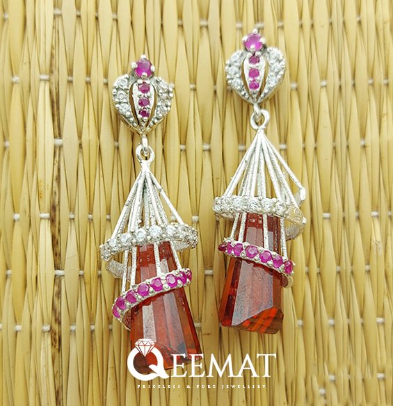 Red Stone Dangle Drop Earring for Women – Made in 925 Silver
