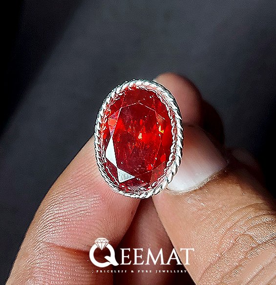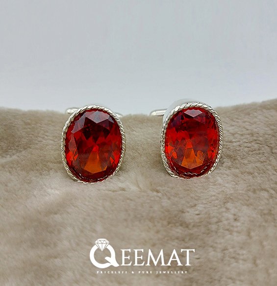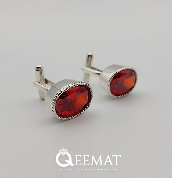 Send Oval Shape Beautiful Silver Cufflinks with Red Gemstone As a Gift