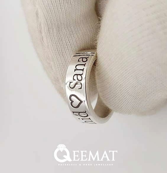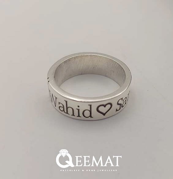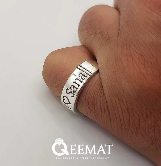 The spirit of showing love can be amplified by gifting a sterling silver band ring with names. You can get engraved a single name, couple name with heart shape, a quote, or any other verse/shape on this silver band ring. This handmade laser engraved ring can be a wonderful gift for engagement ceremony. Shinning and lustrous from inside as well as outside, this ring is a worth-loving and long-lasting gift for your love.