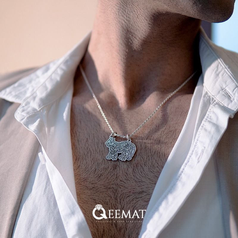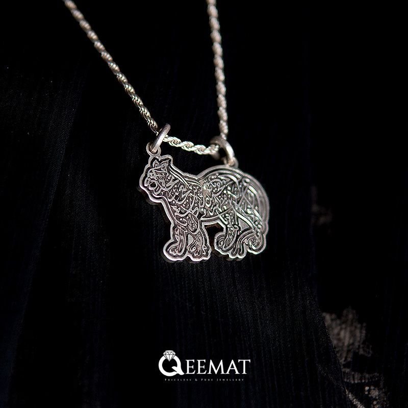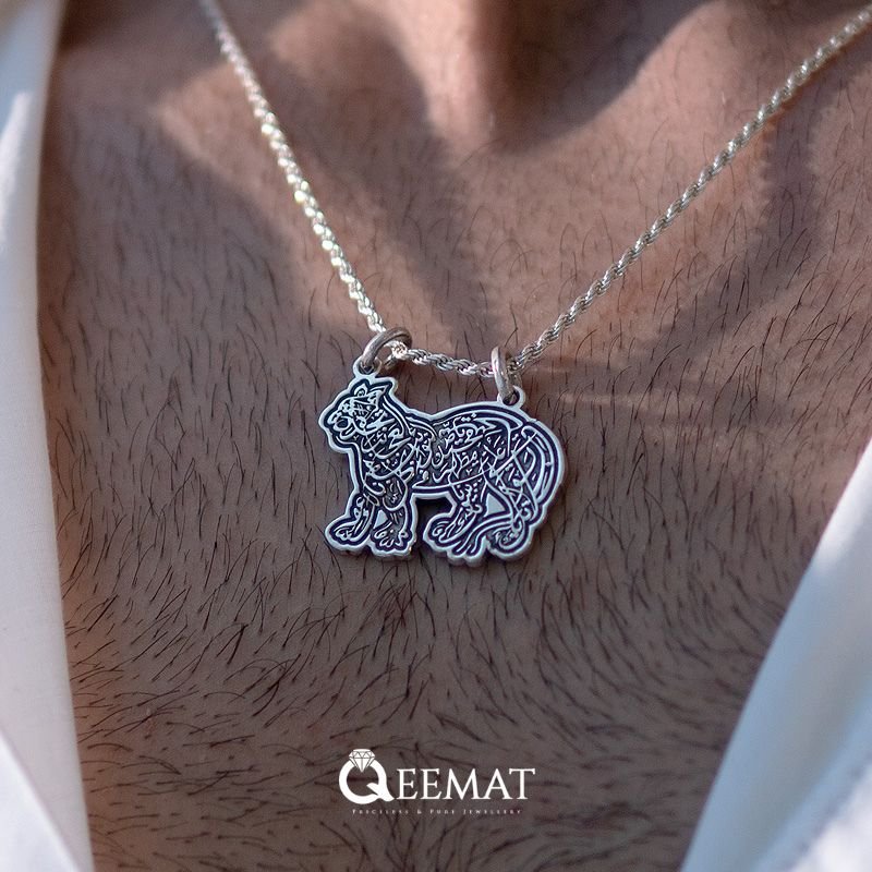 This elegant piece is finely crafted from 925 sterling silver, a high-quality and durable material known for its purity and luster. The pendant is shaped like a lion, symbolic of Imam Ali (AS), often referred to as the “Lion of God” (Asadullah), and intricately inscribed with Arabic calligraphy forming the sacred lines of the Naad-e-Ali dua. The fine detailing and polished finish not only enhance its aesthetic appeal but also reflect the reverence and care that goes into making such a spiritually meaningful ornament.