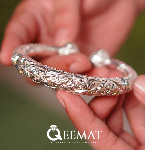 Equally popular in contemporary fashion as well as ancient times, the handmade large bangle bracelets are the best form of personal expression. We have 40+ long years of experienced craftsmen who convert a block of silver metal into a living beauty of bangles. Women love to wear these silver bangle bracelets to express their personality on important events of life like wedding, party etc.