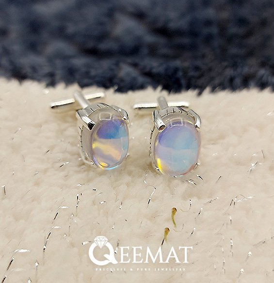 To enrich your formal attire, a silver made pair of gemstone cufflinks play a pivotal role. Not only used for fastening the cuffs of the shirt, these white multi-colored stone cufflinks will be a symbol of status and style. You can choose either a natural cabochon shape opal gemstone or a lab-created gemstone as well to buy a pair according to your budget.