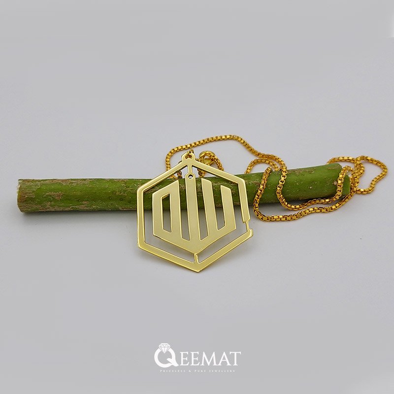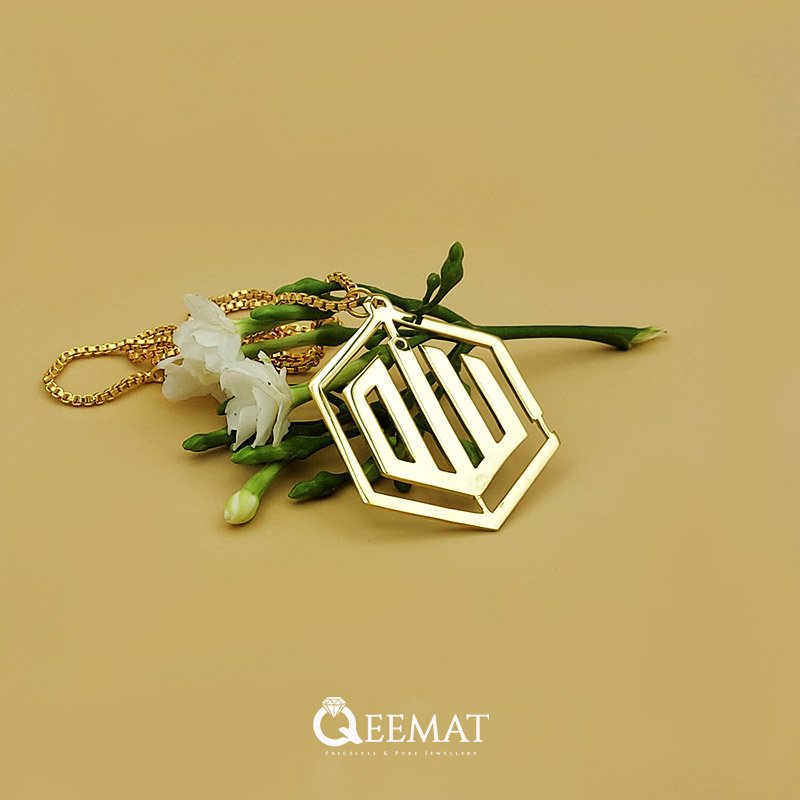 A pure 24K gold plated pendant, with the word Ya Allah written on it, is available at qeemat.com and has a great significance when it comes to Islamic Jewelry. To create a pendant with such a round form is an impressive element while talking about the design features.