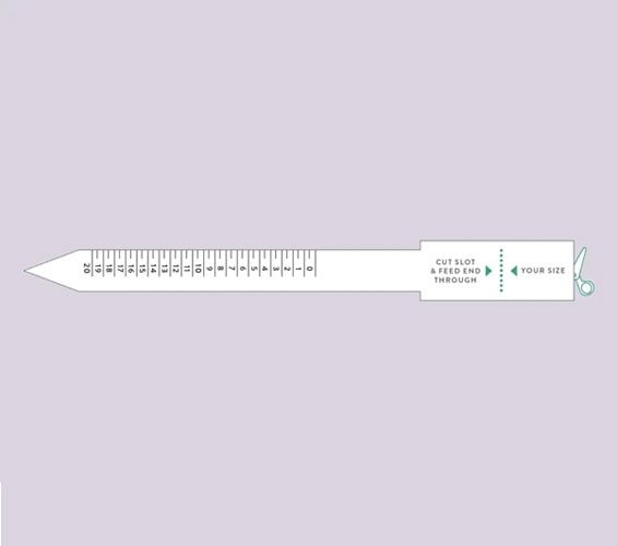 4. Note the number that lines up with the slit; this is your ring size! Remember that quarter sizes are also available if your sizer indicates that you are between whole and half sizes.